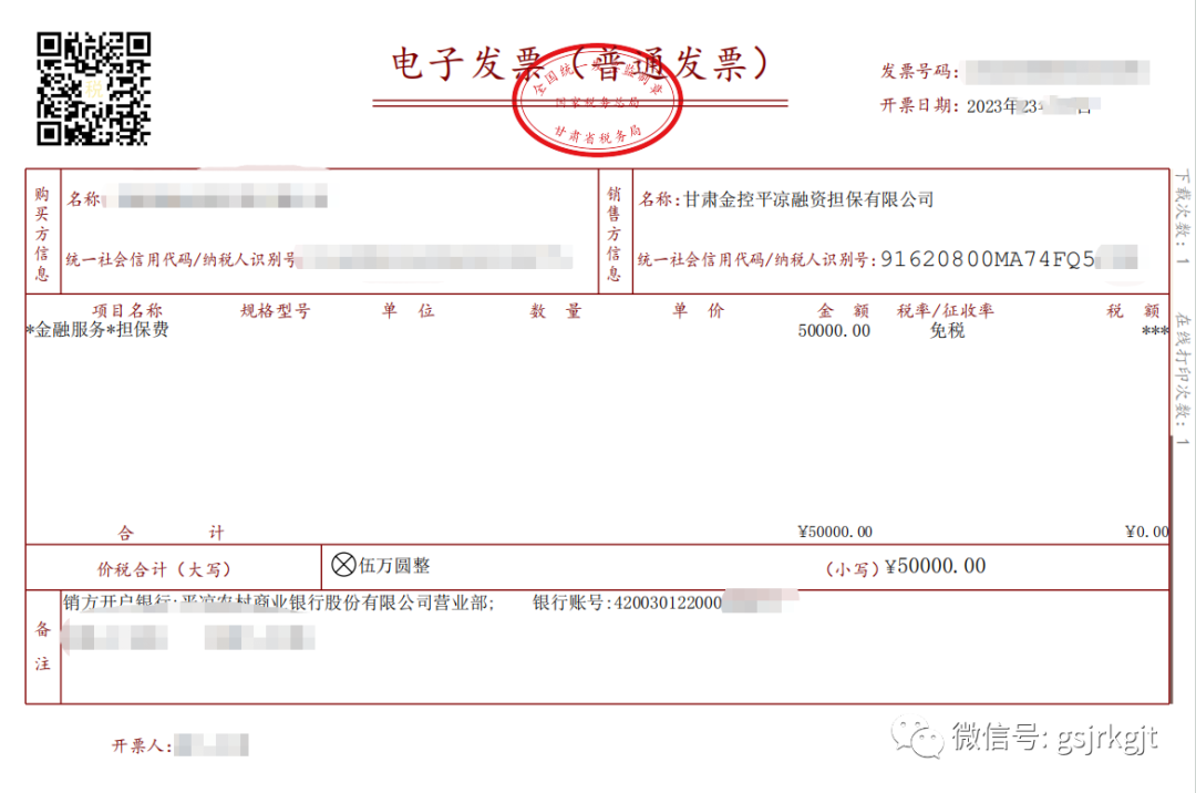 近日,甘肃金控平凉融资担保有限公司通过甘肃省电子税务局平台开具了首张全面数字化的电子发票(以下简称“数电票”),并获受票方公司顺利接收。此次“数电票”的线上全流程实践,迈出了票据无纸化重要的一步,对公司财务数字化管理的探索具有重大意义。